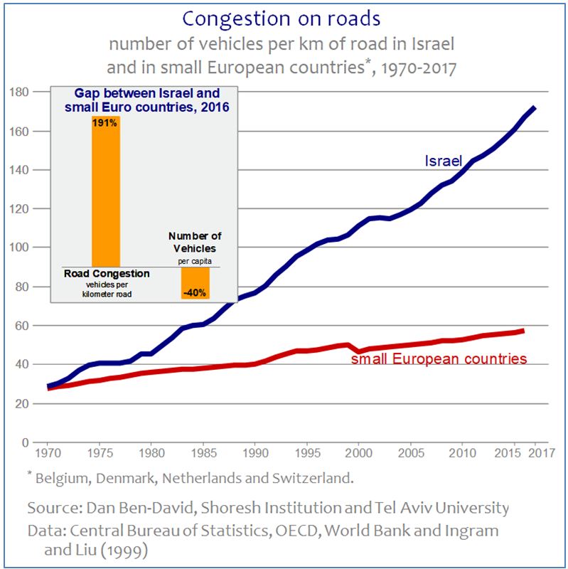 with the average for small European countries in the early 1970s. Since then, Israeli road congestion has risen